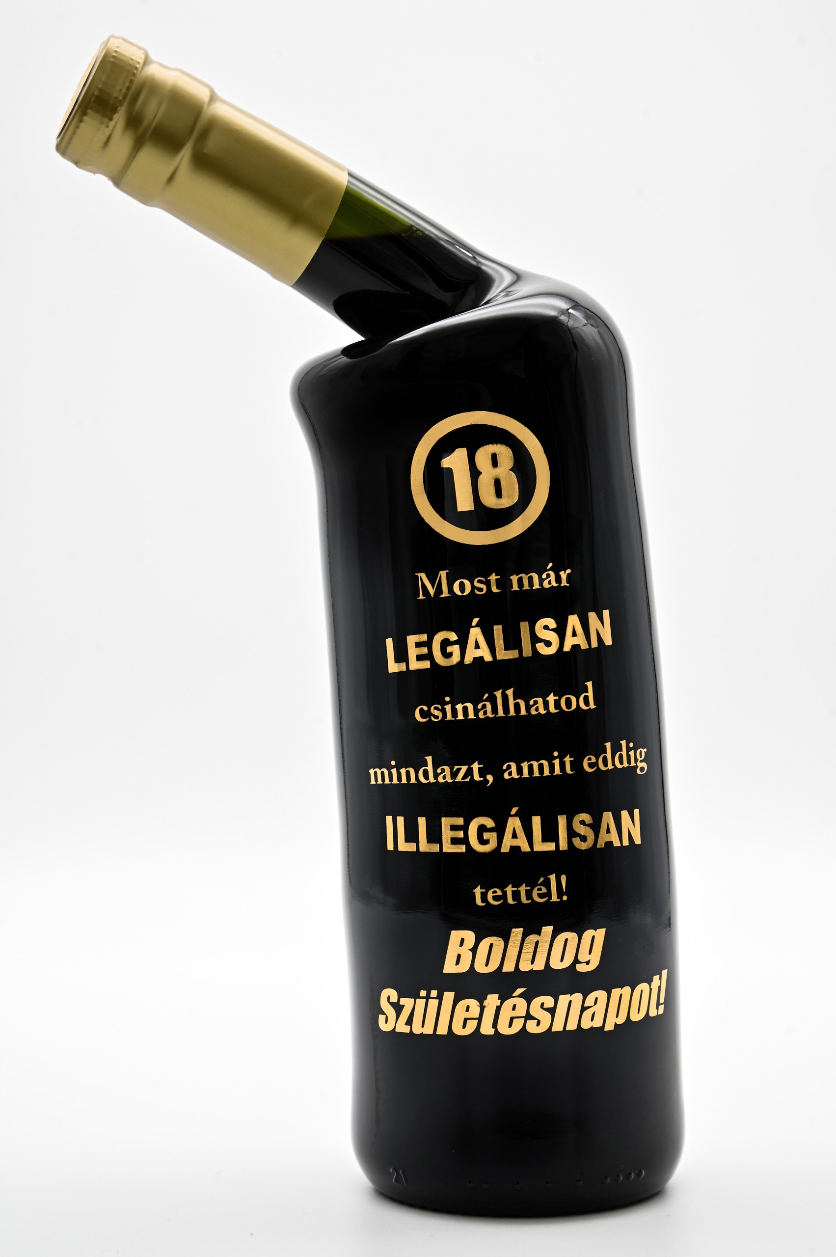 Cabernet Sauvignon ferdenyakú palack “18. születésnap” vicces felirattal