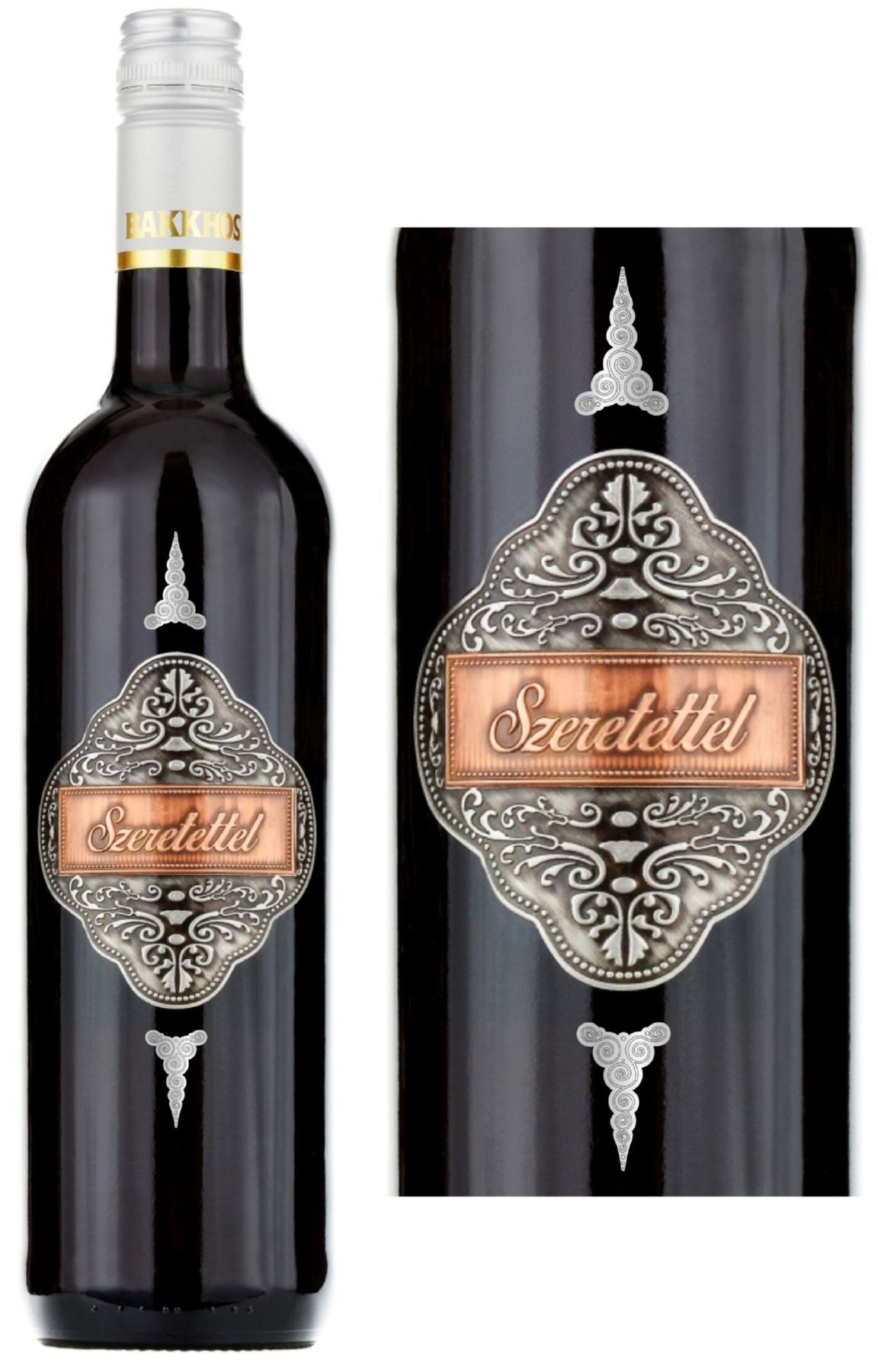 Ha már igazán nem tudod, mit ajándékozhatnál, de valami különlegessel szeretnéd meglepni az ünnepeltet, válaszd bátran ezt a díszüveges bort, melynek fémcimkéjére azt írtuk: “Szeretettel”. Ezzel igazán nem tudsz bakot lõni! S, hogy az öröm még fokozottabb lehessen, a palackot Cabernet sauvignon-nal töltöttük meg.