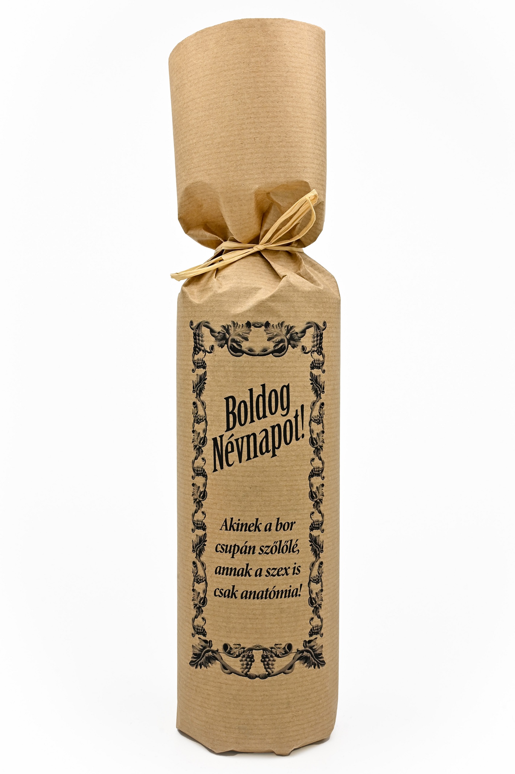 Egri Bikavér “Boldog Névnapot” vicces feliratú papír díszcsomagolásban