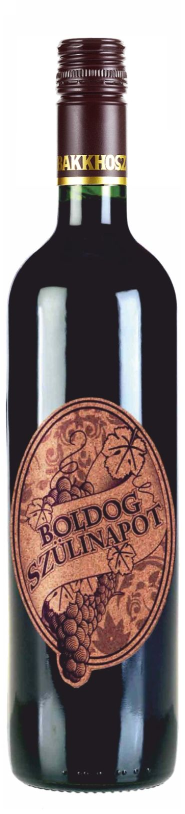 Kékfrankos “Boldog szülinapot” feliratú kilógos parafacímkével