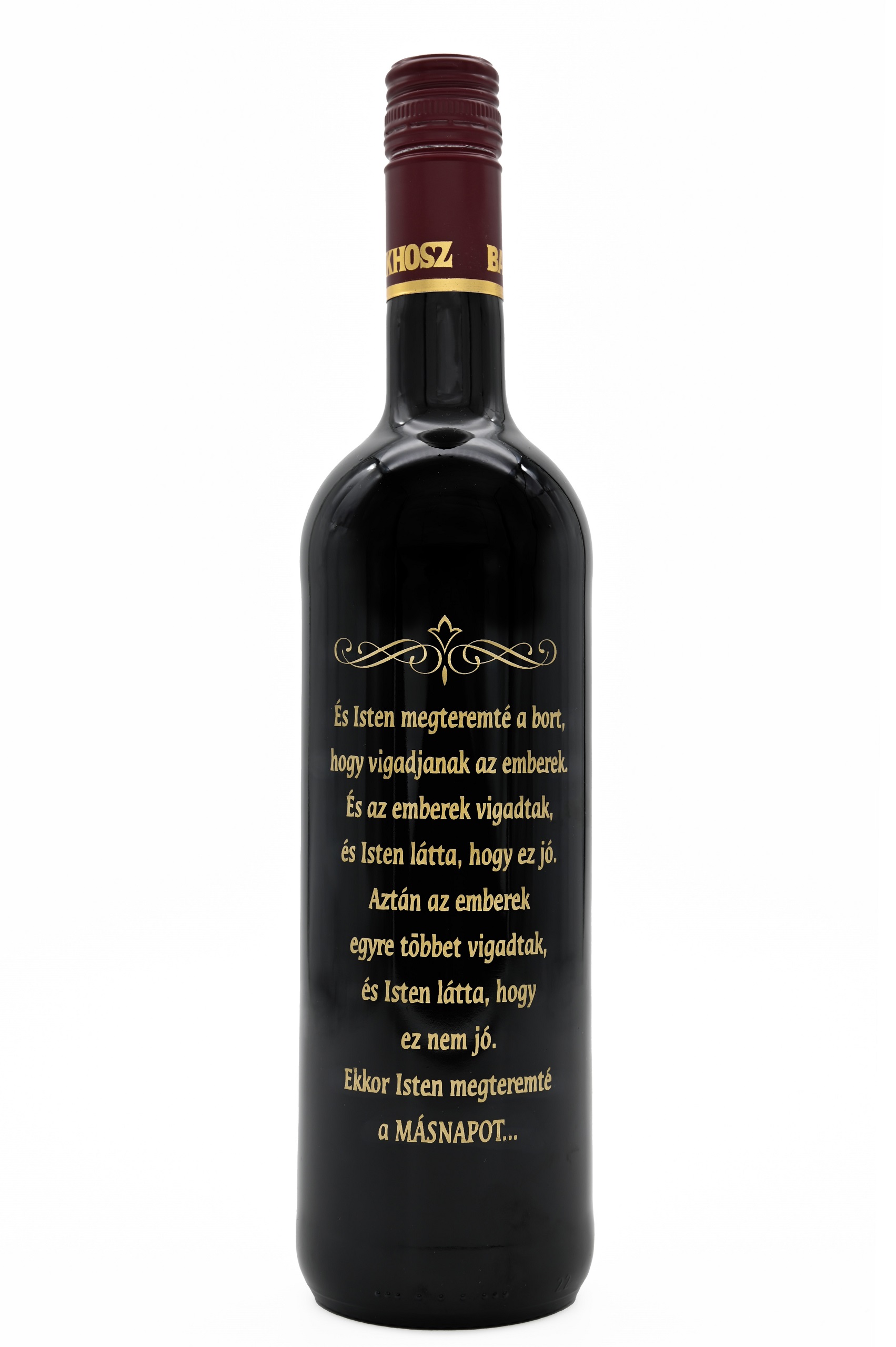 Bölcs és elegáns meglepetés a kifejezetten névnapra palackozott száraz Bakkhosz Cabernet Sauvignonunk, melyet a következõ szöveggel láttunk el: “Az élet egy emberöltõ hosszúságú, egy név örök.”