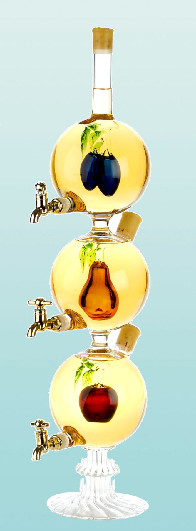 Tokaji Furminttal töltött gömbök, bennük gömbönként különbözõ gyümölcsök csappal.