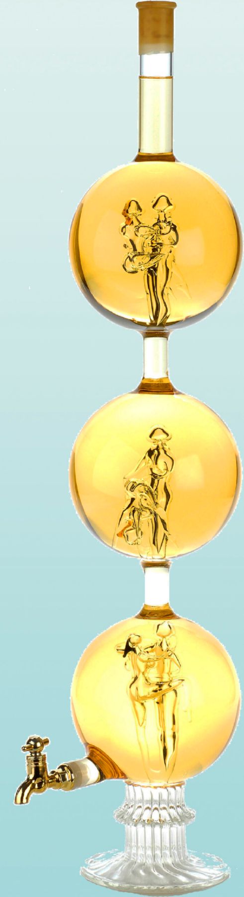 Exkluzív ajándékot keresel egy különleges alkalomra? Ebbe a 3 gömbös palackba pajzán jeleneteket rejtettünk, melyek biztosan mosolyt csalnak az ajándékozott arcára. A bortorony alján ízléses csap segít kitölteni a tartalmát. Exkluzív megjelenése miatt, erre ritkán kerül sor, noha Tokaji Furminttal töltöttük. E Cama sutra motívumos díszüveges bor kiváló ajándék legény-, vagy leánybúcsúra, új kolléga köszöntésére, vagy egy régi búcsúztatójára.